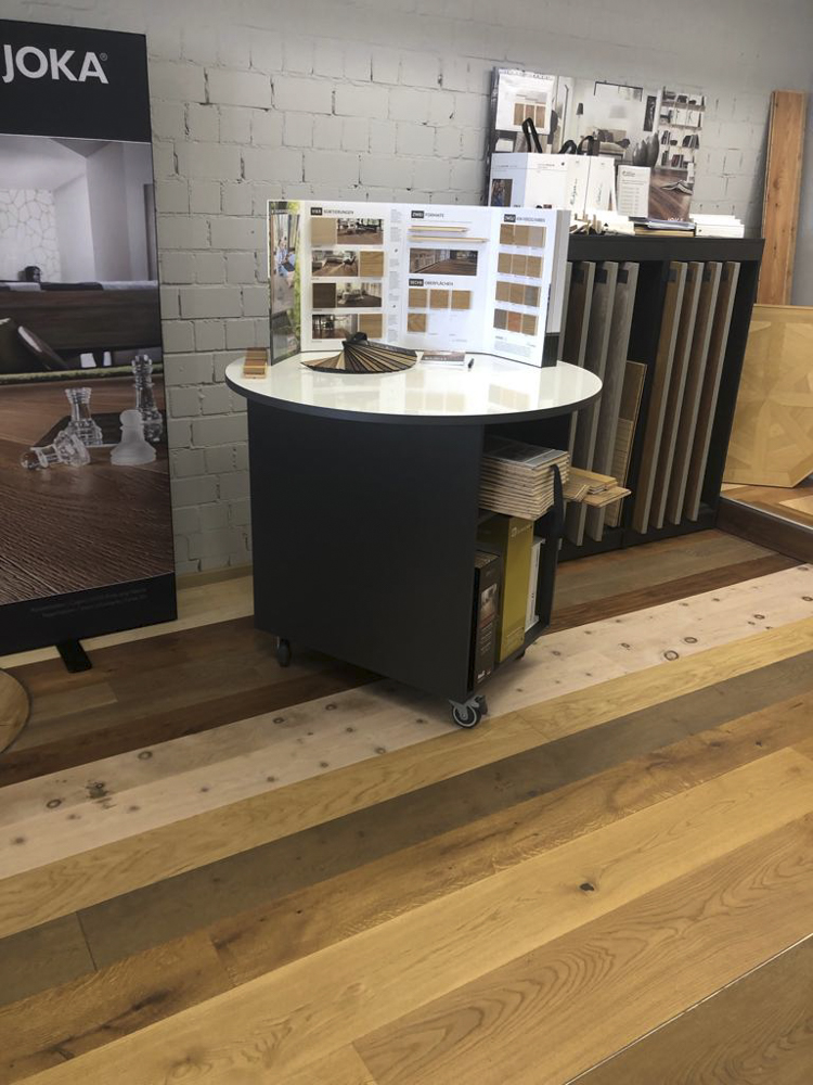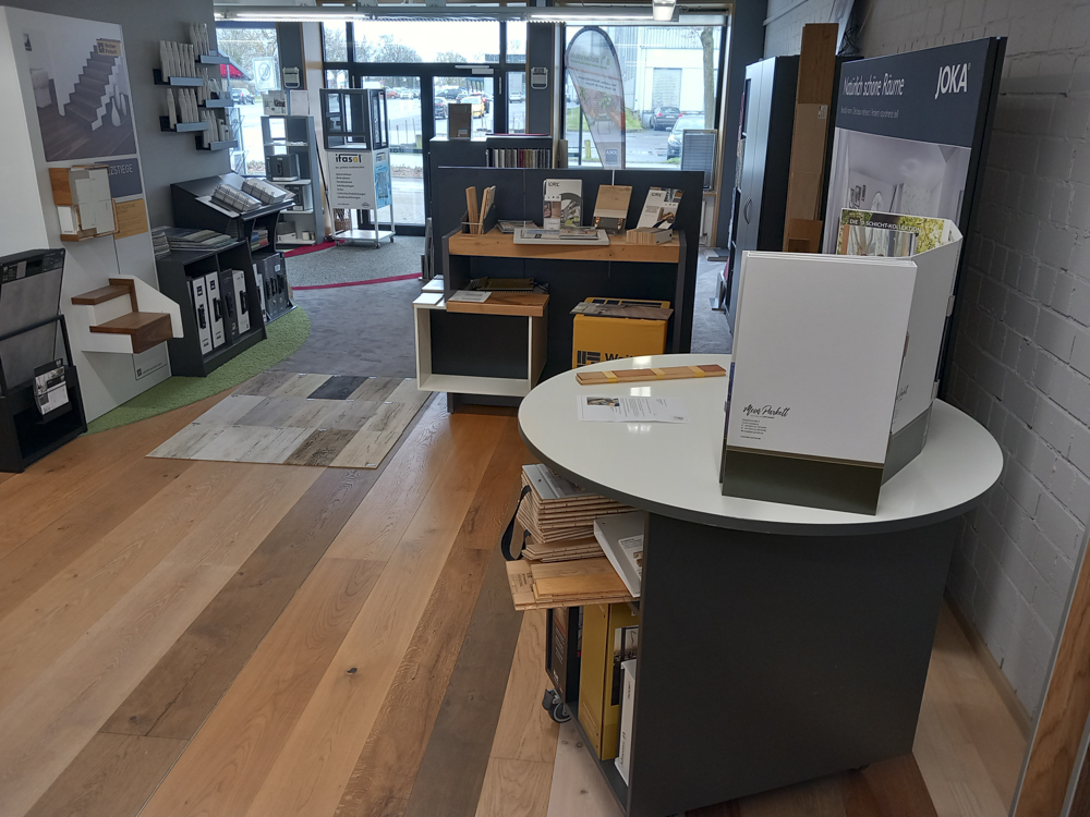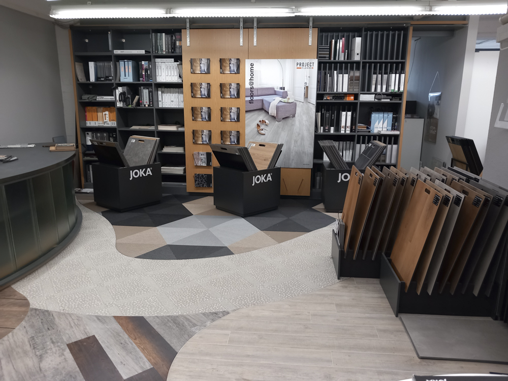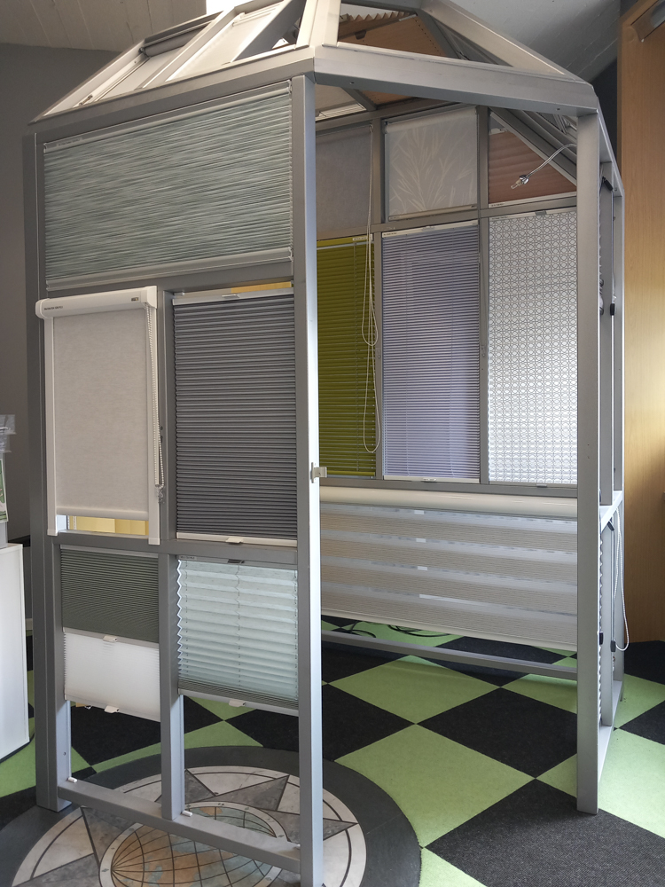 können Sie eine große Auswahl an Bodenbelägen und Sicht- und Sonnenschutz vieler namhafter Hersteller begutachten.